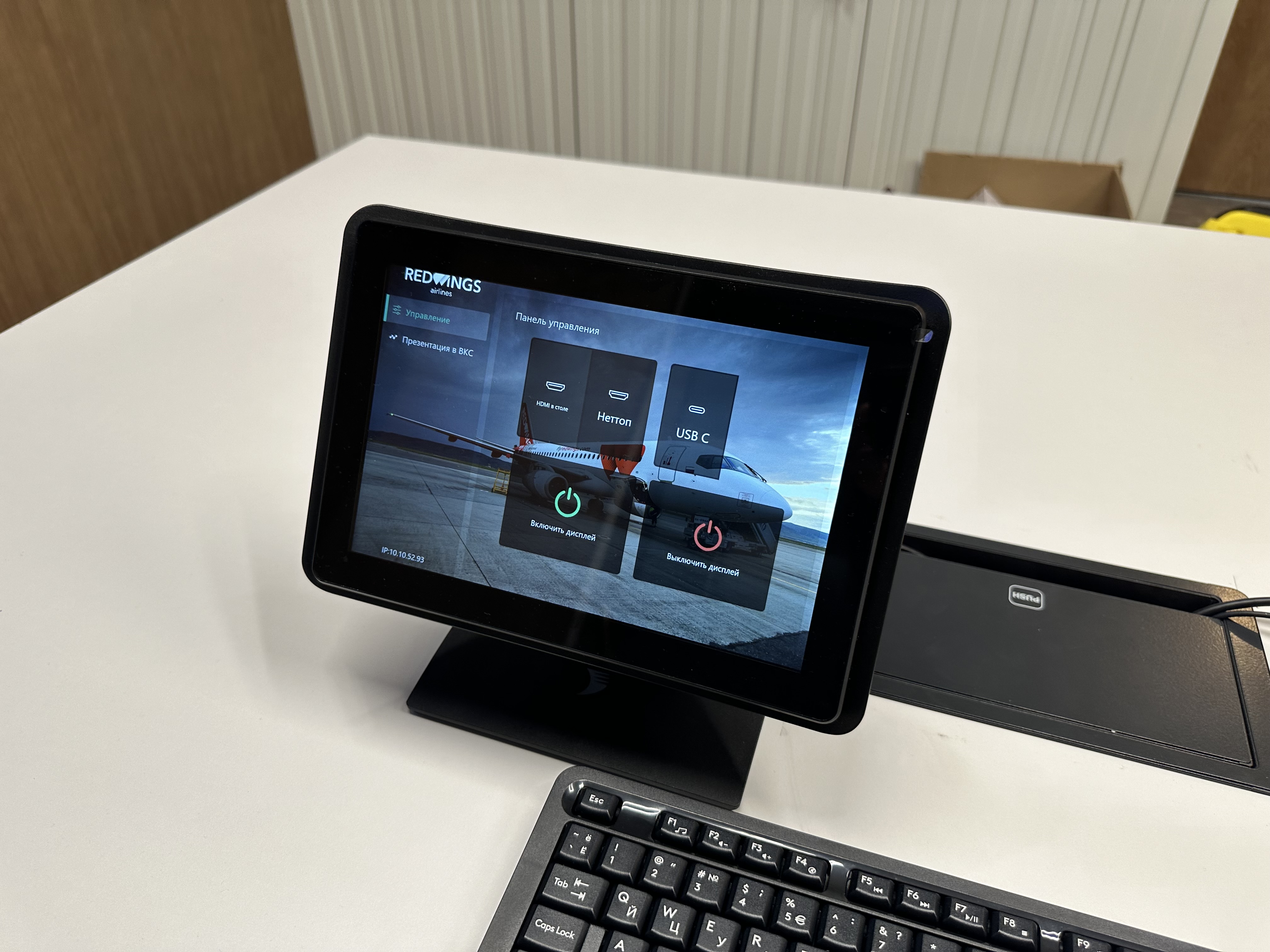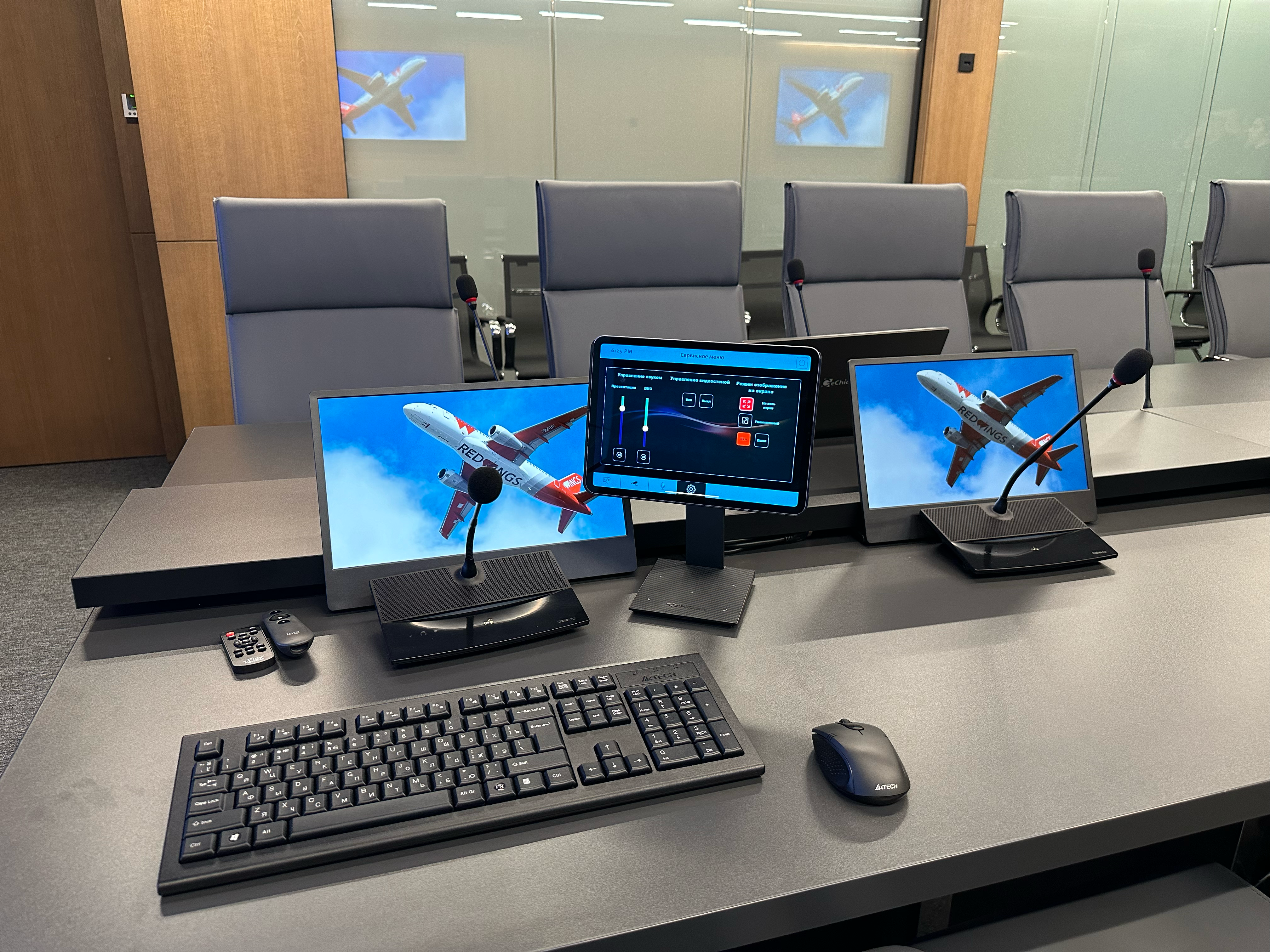 Компания "Агентство креативных мультимедийных технологий" совместно с компанией "1000 Дюймов" оснастили переговорную комнату в офисе авиакомпании Red Wings.