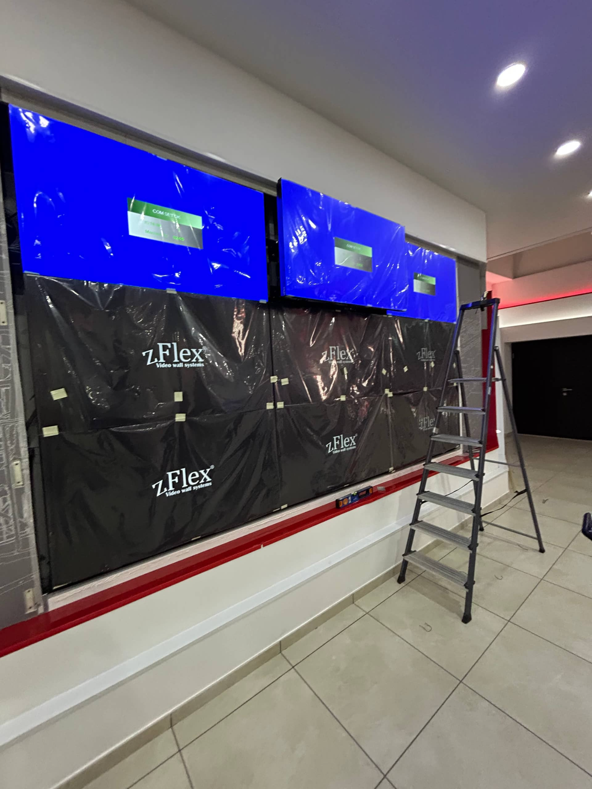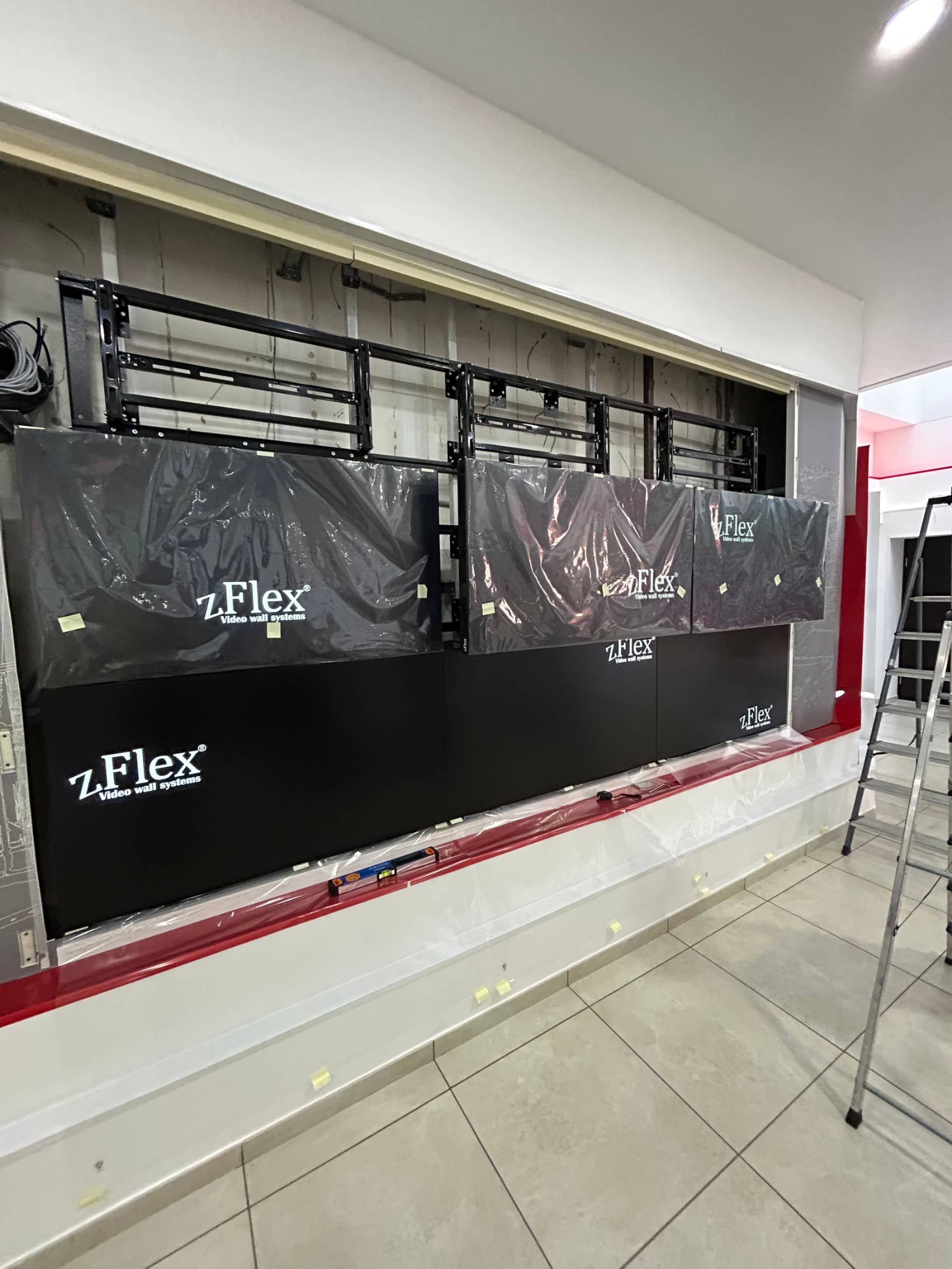 В течение одного дня были произведены работы по демонтажу старой видеостены и монтажу и пусконаладке новой видеостены из LCD панелей zFlex V55-500-35K с межпанельным швом 3,5 мм.